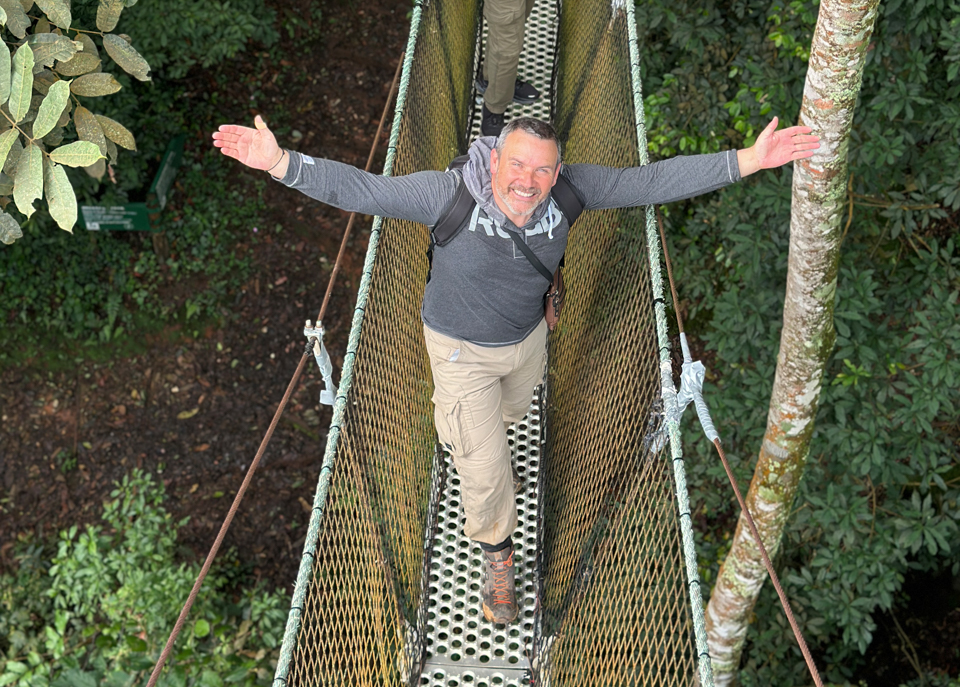 - Canopy Walkway : Un pont suspendu à 70m de hauteur pour dominer la forêt et observer les oiseaux endémiques.