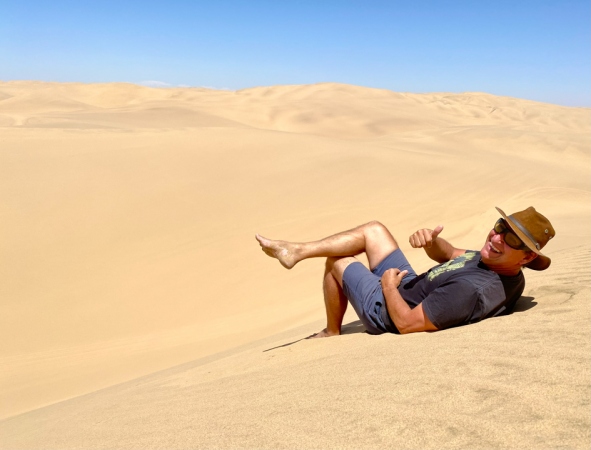 Bienvenue en Namibie ! Durant nos 10 jours à bord de notre 4×4 en self-drive, l’aventure a été notre boussole. D’Okonjima à Etosha, des guépards majestueux aux vastes plaines abritant une faune exceptionnelle, chaque étape a été une découverte. À Waivis Bay, l’océan nous a accueillis avant de nous perdre dans les dunes infinies de Sesriem et les célèbres Sossusvlei. Notre 4×4, symbole de liberté, a tracé le chemin vers des rencontres inoubliables, des rires partagés sous le ciel étoilé de Sesriem aux flamants roses de Waivis Bay, au chaussures fondues dans les dunes de sable brulant… Ces 10 jours en Namibie ont été une odyssée unique, mêlant la beauté naturelle et la richesse culturelle de ce coin d’Afrique.